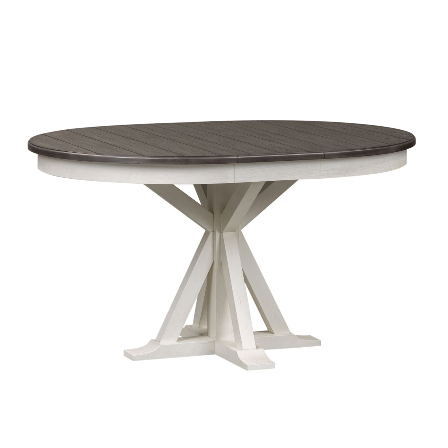 Vintage can refer to “a classic”, add in a relaxed style and you create a classic look with a casual feel. Looks that easily work in today’s homes with a style uncompromised with comfort abound. Includes: Single Pedestal Table Top,Single Pedestal Table Base Wood:Pine Solids & Veneers with Cathedral White Oak Tops Finish:Wirebrushed White Finish w/ Charcoal Tops Item Features: •Round to Oval Table Top •Planked Tops •Easy Glide Leaf System •Includes One 12″ Leaf •Criss-Cross Pedestal Base
