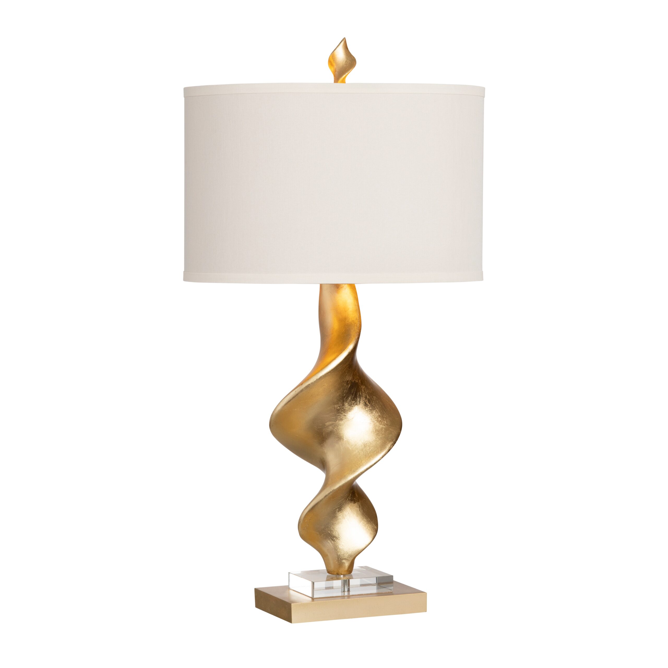 Invoke images of an everlasting flame with the Crestview Collection Summit Table Lamp. The spiral gold finish of the lamp’s column ever reaches up with its warm tone, and the golden base with a clear glass detail adds luxury to the modern look. A simple w